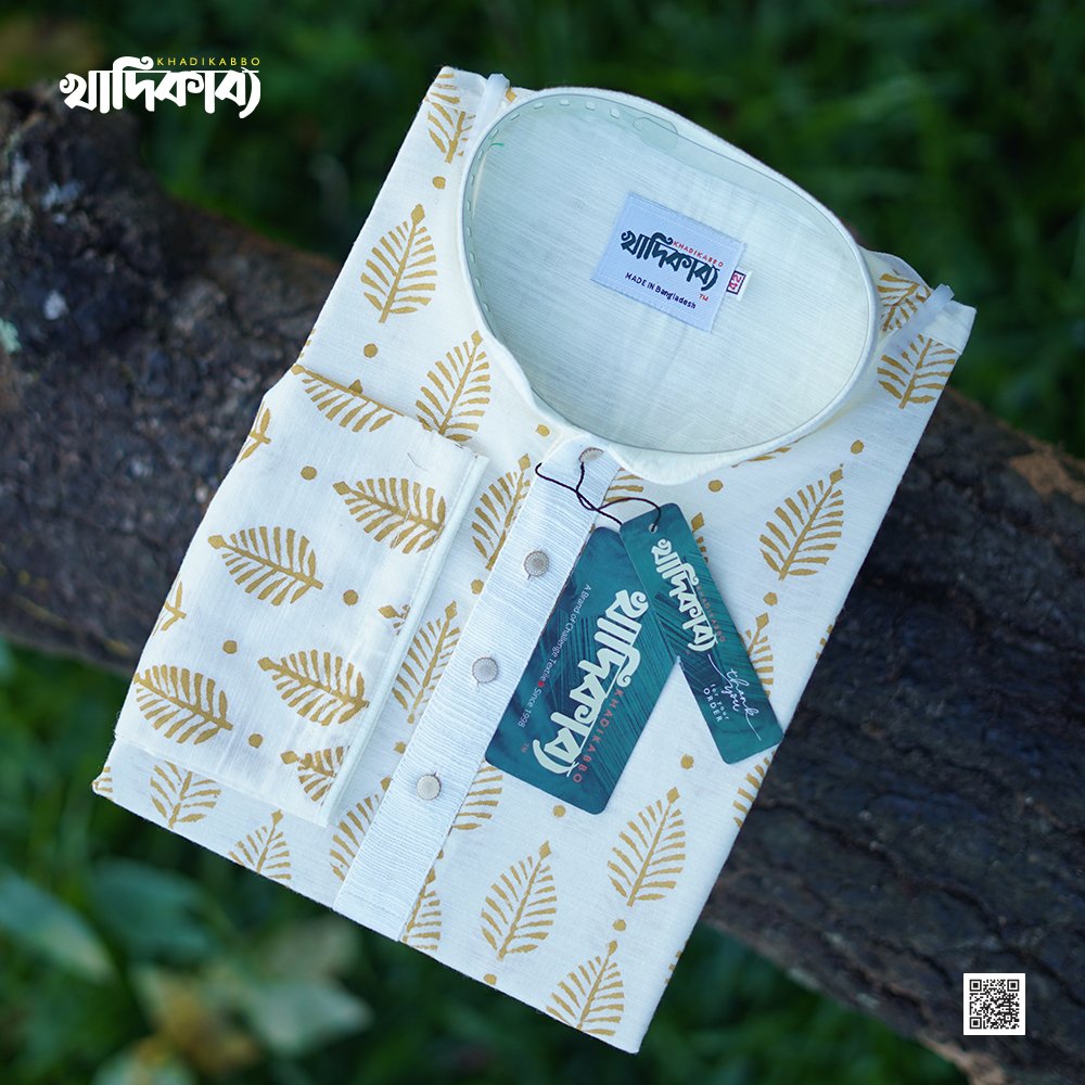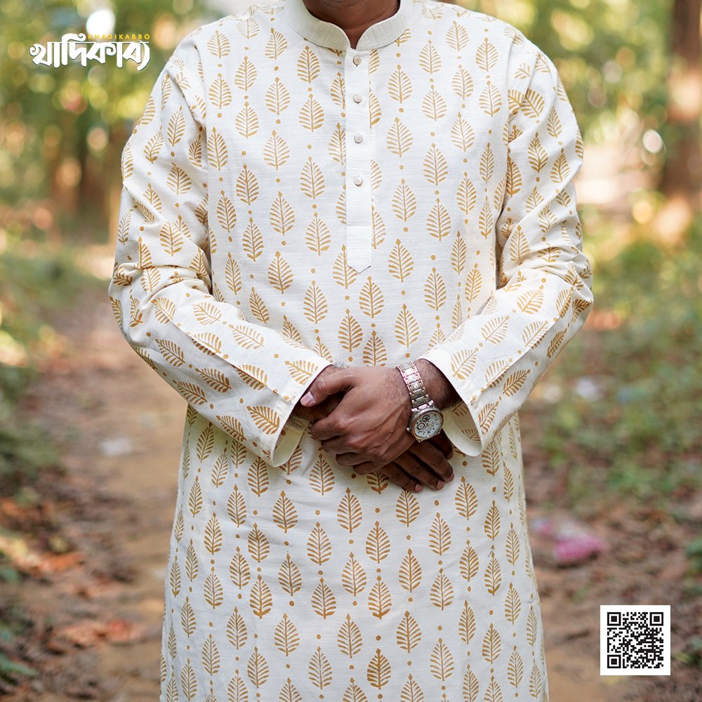 পাতা ব্লক প্রিন্ট খাদি পাঞ্জাবি CBP-11